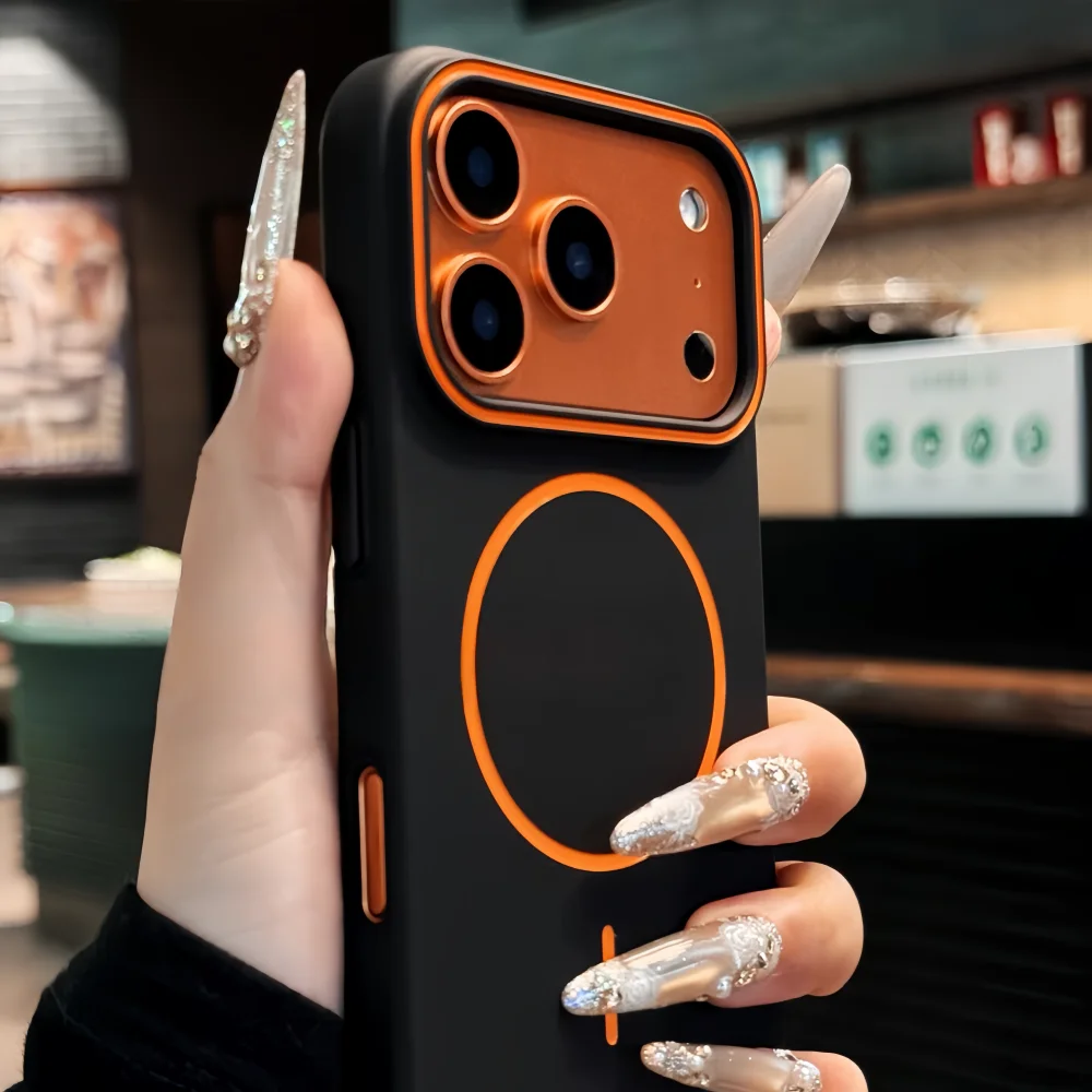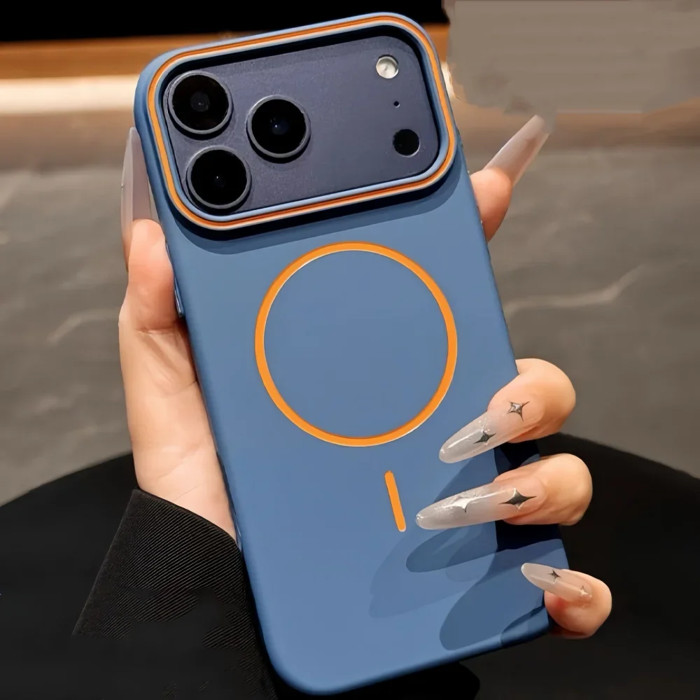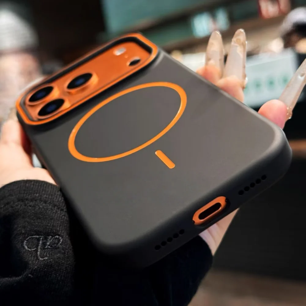 O grande diferencial desta linha é o anel MagSafe em cores contrastantes, que adiciona um toque de design esportivo e moderno ao seu setup. Além do estilo, os ímãs garantem uma conexão firme e um alinhamento perfeito com carregadores sem fio e acessórios magnéticos.